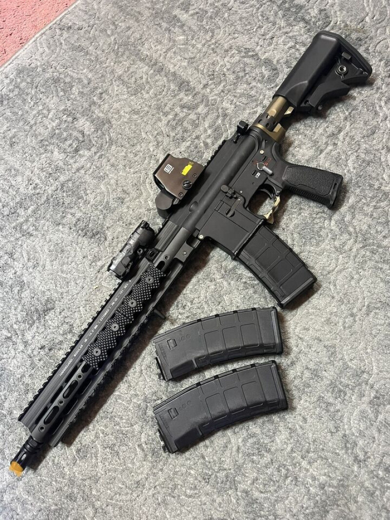 Mags are WE TECH pmags modified to fit into the 416 magwell. Comes with 3 magazines total!